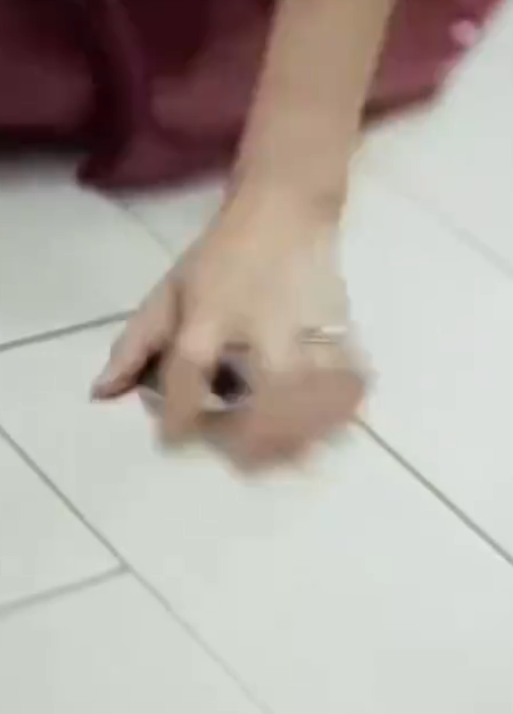 강제로 민숙의 팔을 잡아챈뒤 사진을 확인합니다.